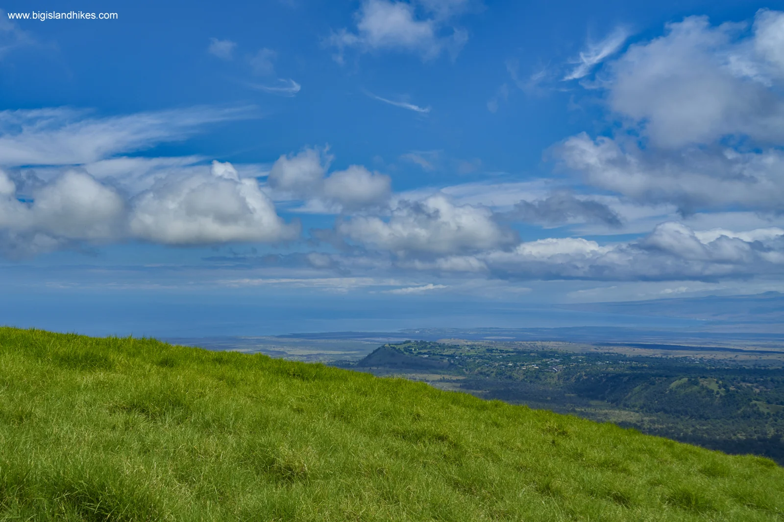Trailhead: Traveling from either Kailua-Kona or Waimea town on Hwy. 190, find the turn for the trailhead between the 21 and 22 mile markers (closer to the 21 mile marker). Drive along a white pipe fence and shortly find a metal gate that opens automatically by the presence of your car. Drive up the Vulcanite Road for about 50 yards and find a dirt parking area and a check-in station on your left. Do not drive further up the road, and do not take the right turn that is clearly marked for authorized vehicles only. This way leads to private property.